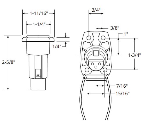 2-napainen kiinnike on suunniteltu käytettäväksi Attwoodin valomastojen kanssa. Kiinnike on 7,5° kulmalla ja siinä on kansi, joka suojaa liitintä, kun valomastoa ei käytetä. Liitin on suojattu virheellisen asennuksen estämiseksi, ja sen kontaktit on nikkelöity korroosionkestävyyden parantamiseksi. Kiinnike voidaan asentaa kapeisiin seiniin tai kansiin. Yhteensopiva Attwood-mallien: 5110, 5310, 5330, 5340, 5530, 5540, 3591, 910851 ja 5091 kanssa.