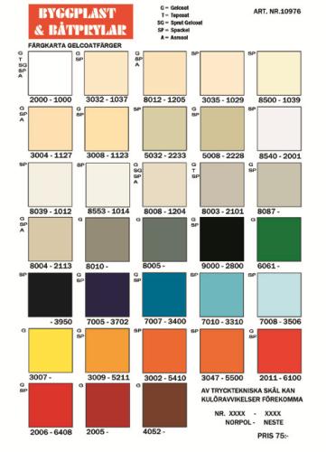 Huomioi, että värit voivat vaihdella eri tuotantoerien välillä ja vanha gelcoat-/topcoat-pinta voi olla haalistunut.