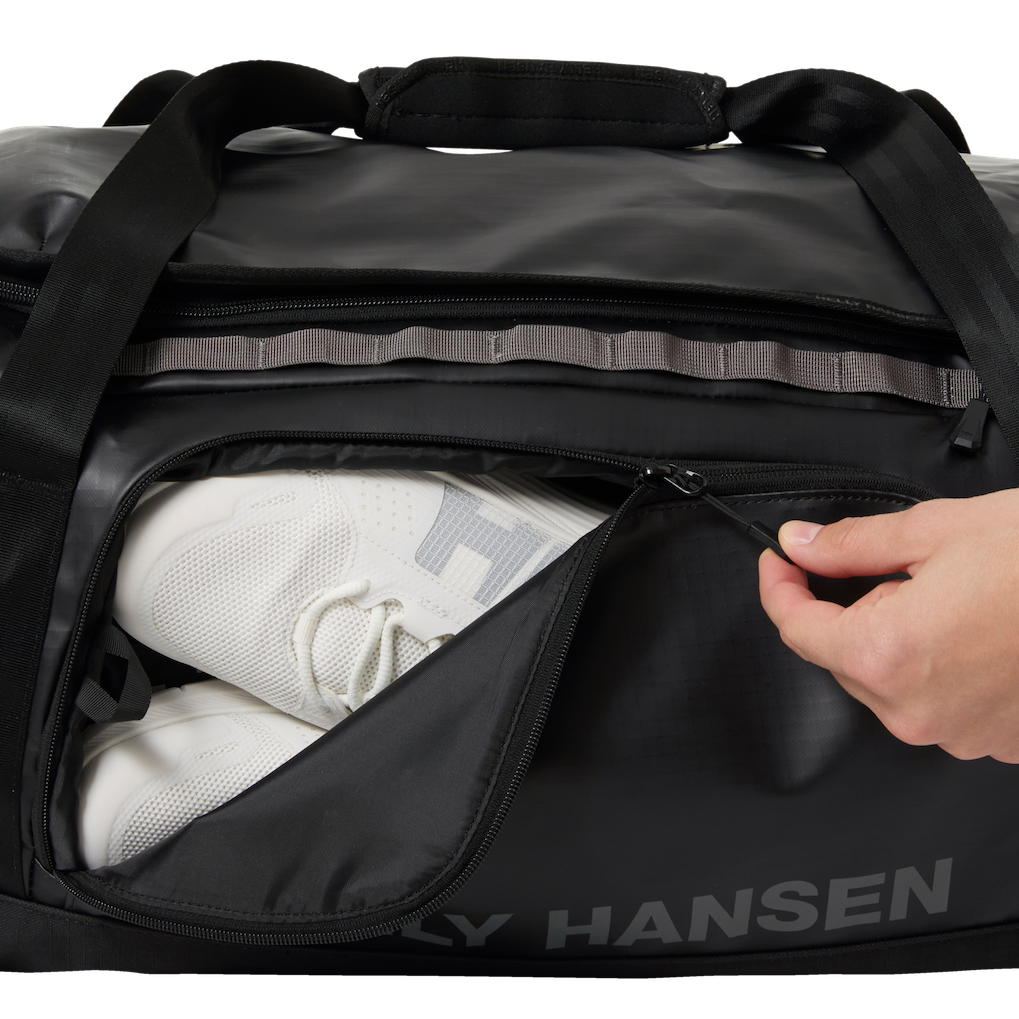 Kantohihnat on tehty turvavyötyyppisestä nauhasta, mikä takaa erinomaisen kestävyyden, ja neopreenipehmustettu kahva tekee kantamisesta mukavaa. Piilotettavat, pehmustetut olkahihnat mahdollistavat laukun muuttamisen repuksi, mikä tuo lisää joustavuutta liikkumiseen.