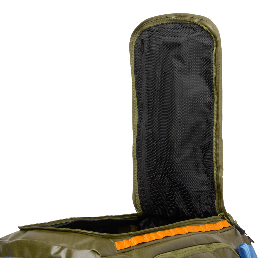 Suuri U-muotoinen avaus helpottaa pakkaamista ja tavaroiden löytämistä nopeasti. Lukittavat vetoketjut lisäävät turvallisuutta, ja useat säilytyslokerot – kuten sisäpuolen verkkotaskut sekä piilotettava sivutasku – pitävät varusteesi hyvässä järjestyksessä.