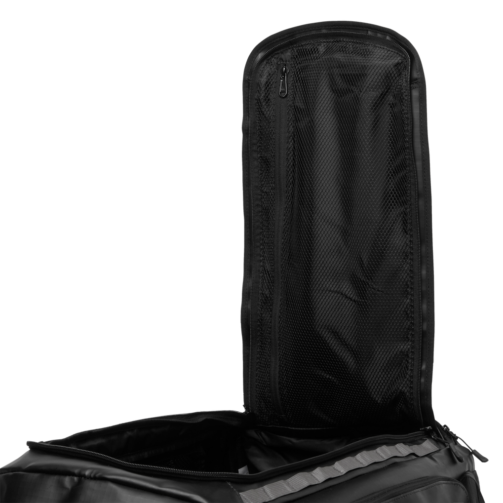 Suuri U-muotoinen avaus helpottaa pakkaamista ja tavaroiden löytämistä nopeasti. Lukittavat vetoketjut tuovat lisäturvaa, ja sisäpuolen verkkotaskut sekä piilotettava sivutasku auttavat pitämään varusteet järjestyksessä.