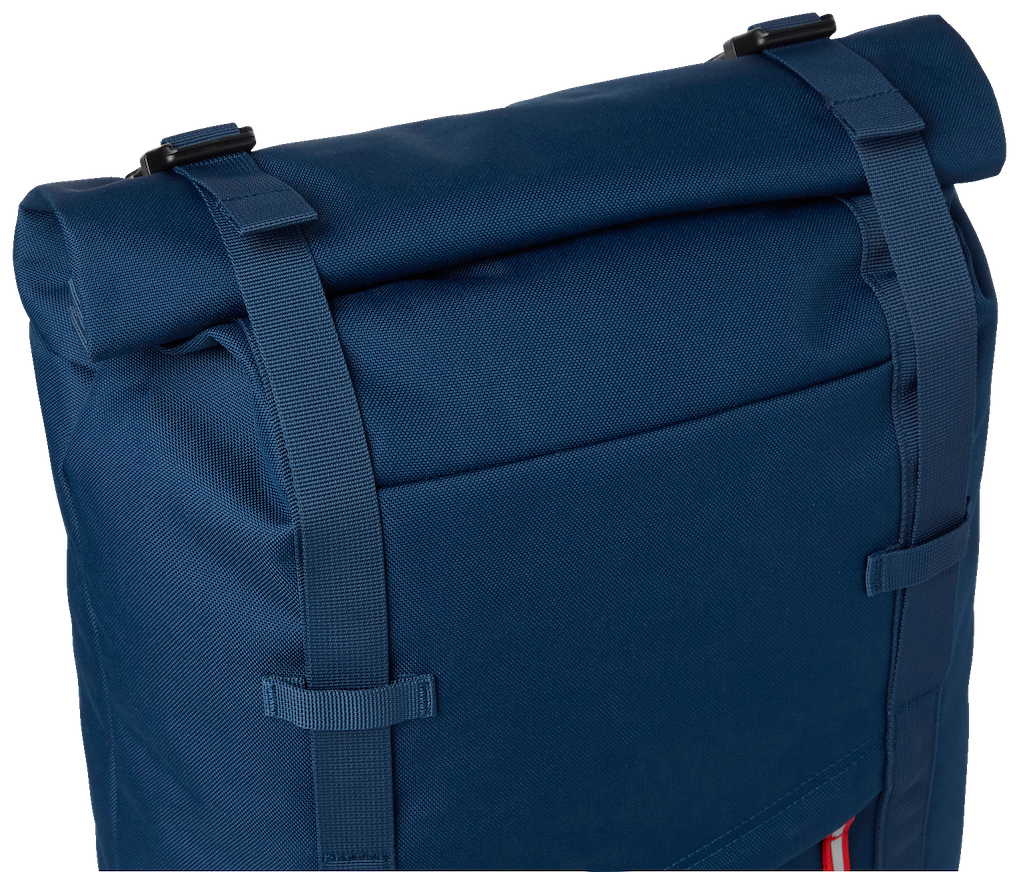 Stockholm-reppu suljetaan kätevällä roll-top-rullasuljennalla ja soljella, mikä tekee siitä sekä tyylikkään että käytännöllisen valinnan kaupunkiympäristöön.