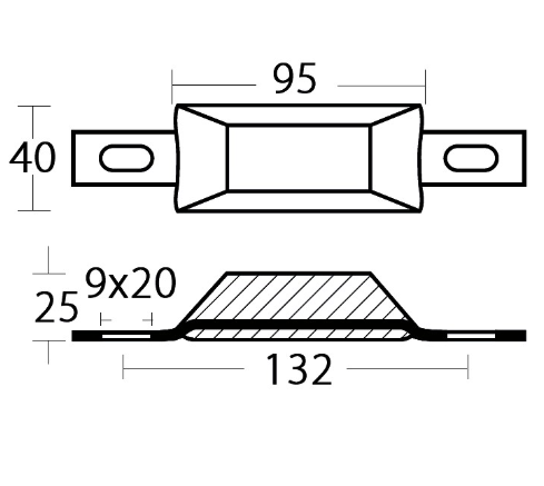 Magnesiumista valmistettu runkoanodi veneen rauta- ja muiden metalliosien suojaamiseen syöpymistä vastaan. Soveltuu erityisesti makeassa vedessä käytettäville veneille.
