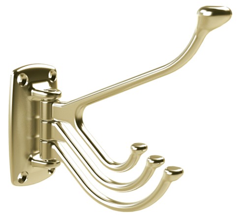 Messinkinen vaatekoukku, neljä käännettävää koukkua.