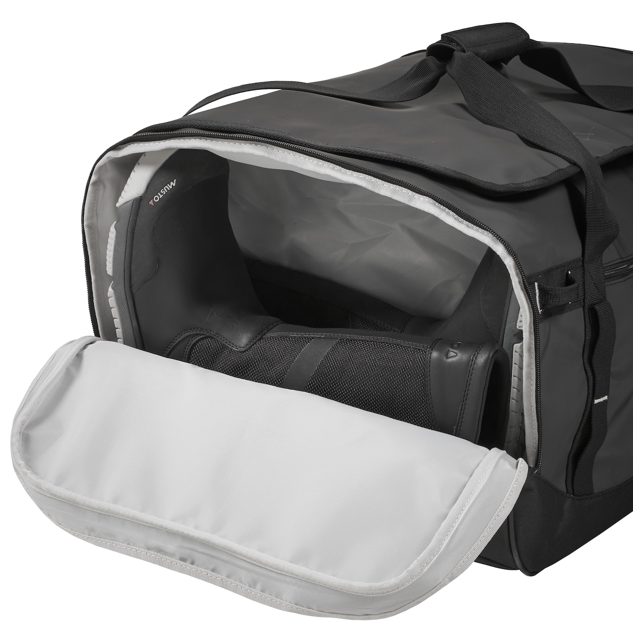 Suuri U-muotoinen avaus tekee päälokerosta helposti saavutettavan. Mukautuvat päätytaskut sisältävät erillisen osion likaisille kengille tai märille varusteille. Sisäinen verkkotasku auttaa pitämään tavarat siististi järjestyksessä.