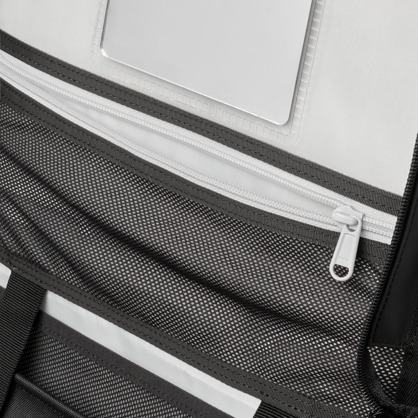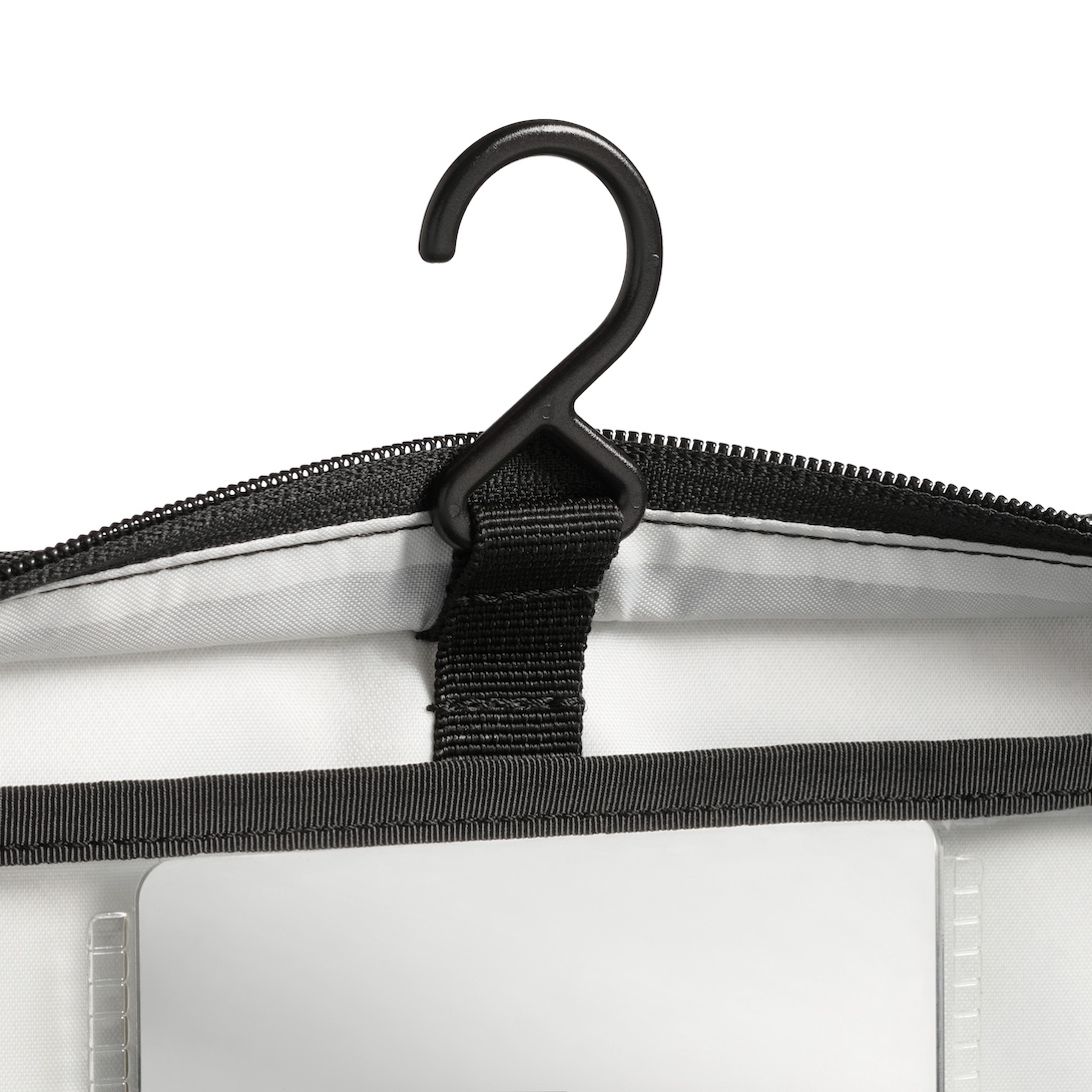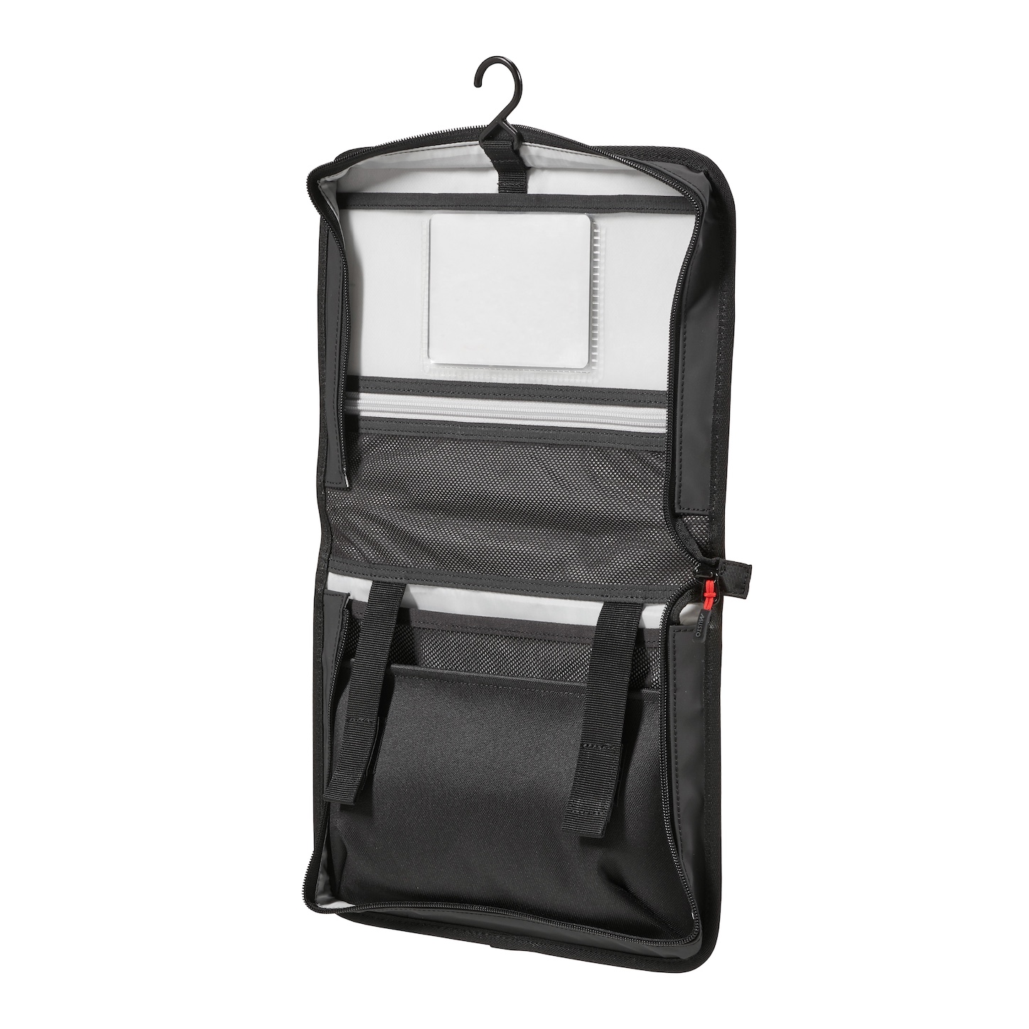 Laukku avautuu vetoketjun ansiosta kokonaan kolmelta sivulta ja taittuu auki litteäksi, mikä tekee tavaroiden löytämisestä ja käytöstä helppoa. Yläosassa oleva ripustuskoukku mahdollistaa laukun kätevän ripustamisen esimerkiksi kylpyhuoneessa tai veneen hytissä.