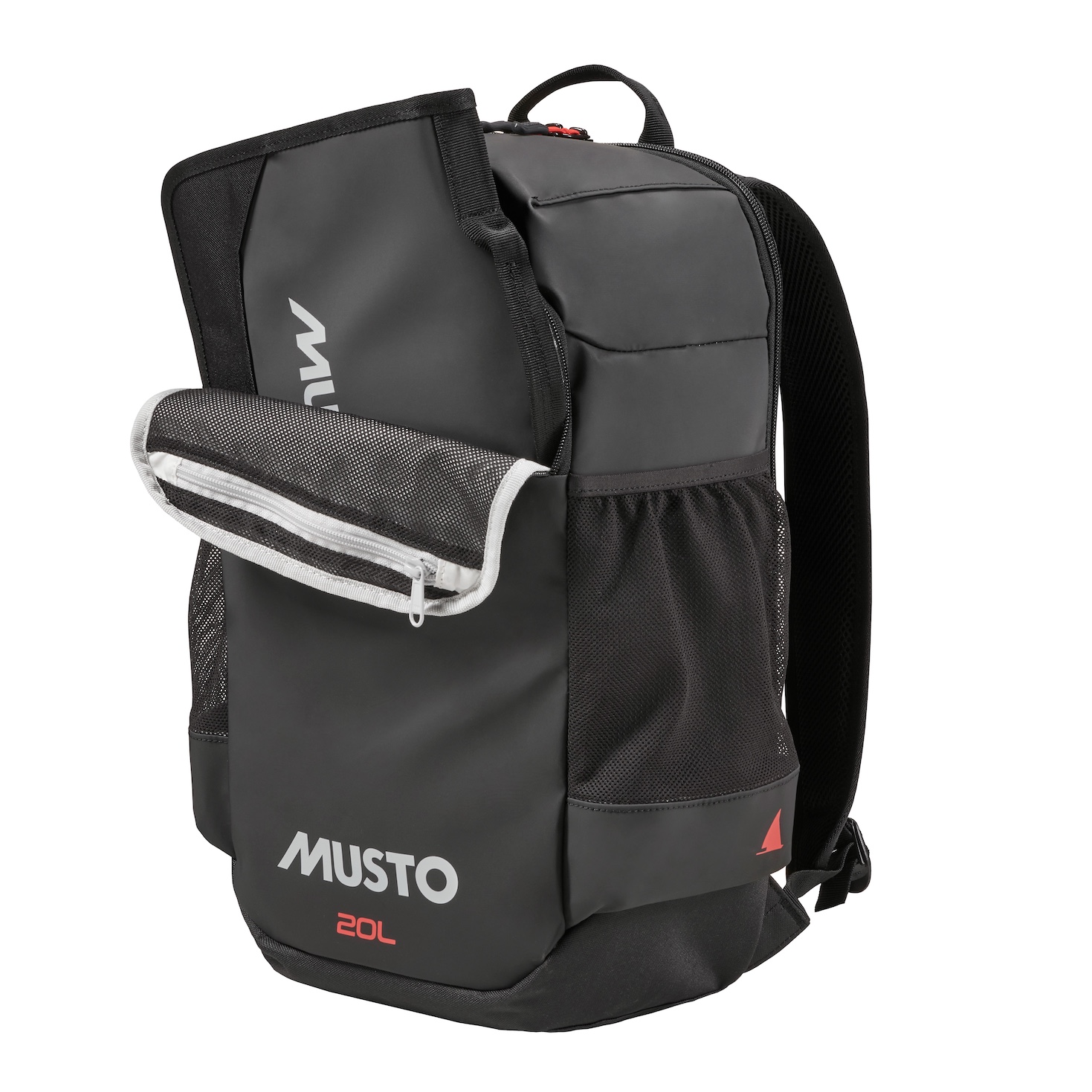 Useat sisäpuolen taskut auttavat pitämään tarvikkeet siististi järjestyksessä, ja irrotettava peili tuo lisää joustavuutta valmistautumiseen matkalla. Viimeistelynä laukussa on tukeva kantokahva sekä Musto-brändäys.