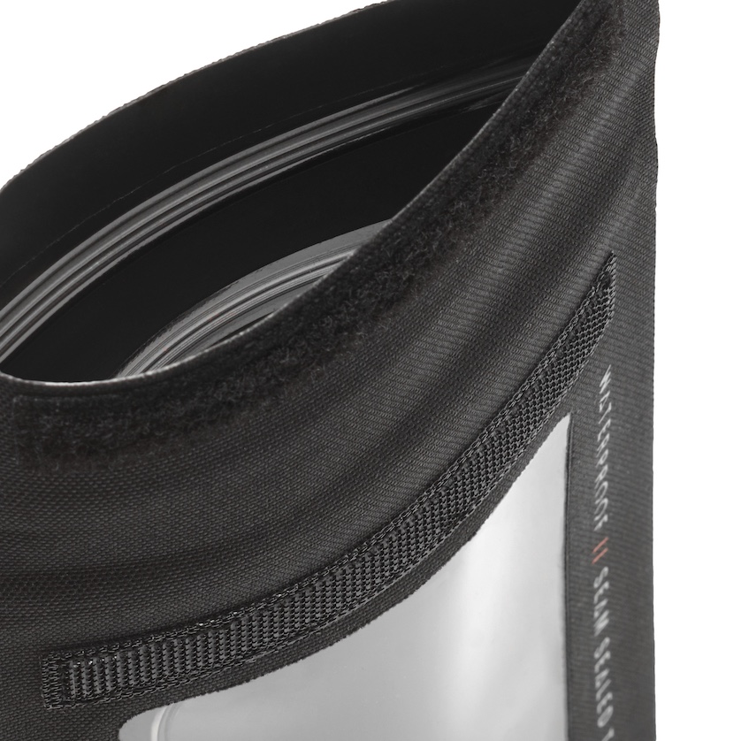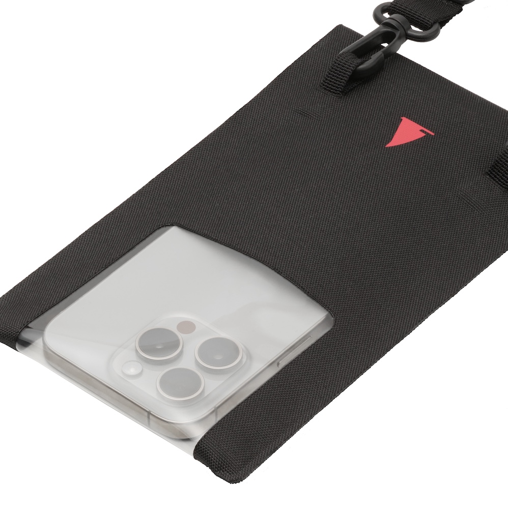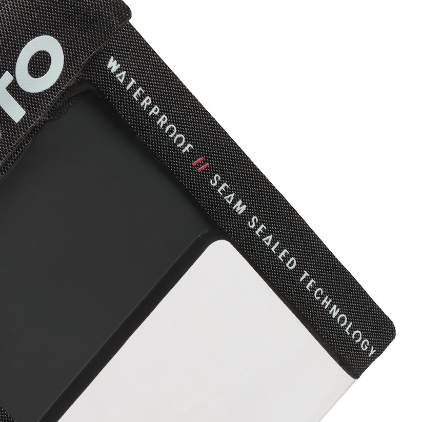 Kotelossa on kaksinkertainen tiivistysjärjestelmä, joka suljetaan taittamalla, jotta suojaus on mahdollisimman varma. Mukana on säädettävä ja irrotettava kaulanauha, jonka ansiosta koteloa on helppo kantaa mukana.