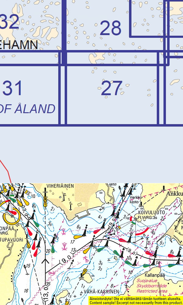 Matalavesi näkyy sinisenä värinä. Kartat ovat entistä selkeämpiä ja helppolukuisempia, ja mikä parasta, karttakoordinaatit ovat suoraan yhteensopivia GPS-paikannuslaitteen kanssa.