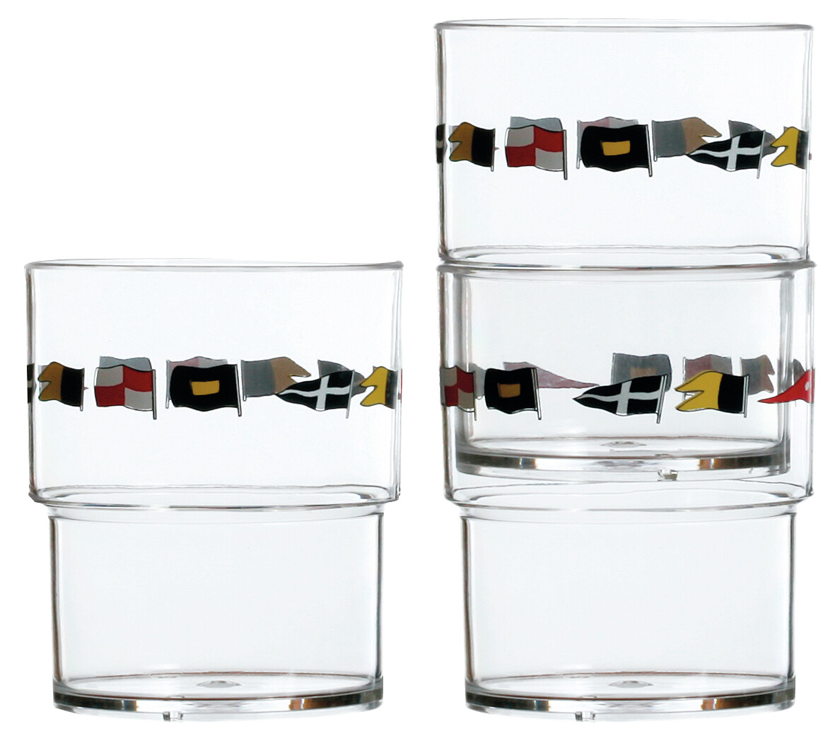Regata-sarjan lasit on valmistettu särkymättömästä MS-materiaalista (60 % akryyliä ja 40 % polystyreeniä). Ne sopivat erityisesti kylmille juomille.