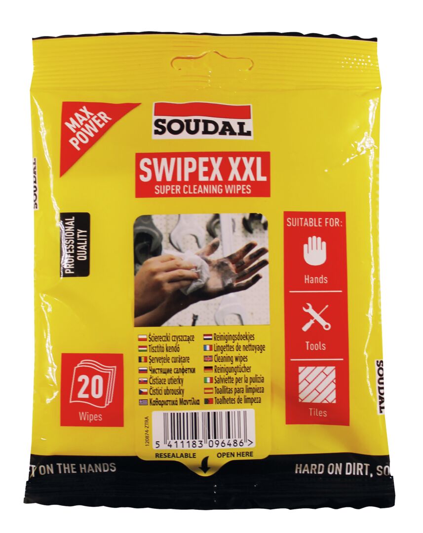 Swipex on kuitukankainen (non-woven) puhdistusliina vaativaan käyttöön. Impregnoitu erikoisliuoksella, joka mahdollistaa maalien ja muiden kemiallisten aineiden kuten musteen, liiman, liimamassojen, kovettumattoman pu-vaahdon, öljyjen ja rasvojen poiston käsistä, työkaluista ja yleisesti kovilta ei-huokoisilta pinnoilta. 20 kpl.