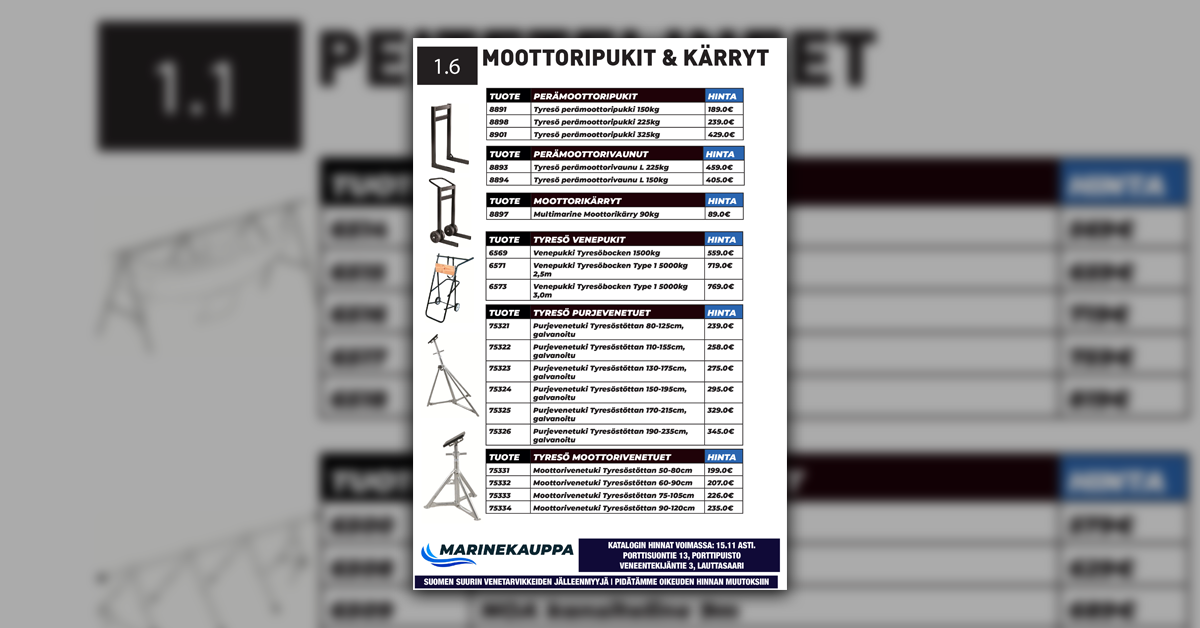Valikoimissamme mm. Peitetelineet, venepeitteet, venepukit, moottoripukit, moottoriöljyt, suodattimet, kosteudenpoistajat ja paljon muuta.