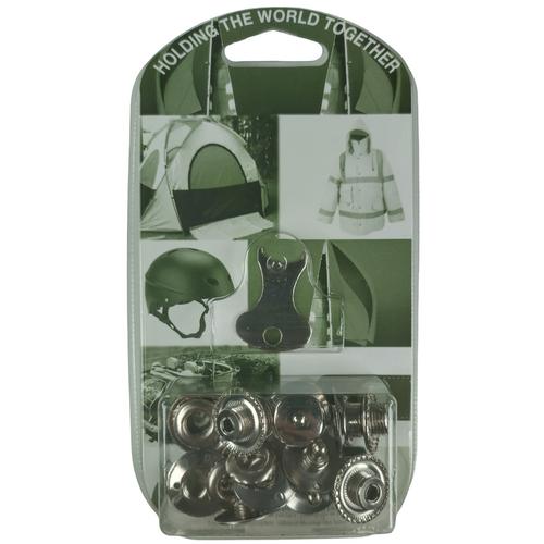 Tomax-nappi kankaalle. Tarkoitettu kapellin kiinnittämiseen. Pakkaus sisältää 4 nappia ja mukana tulee asennusavain.
