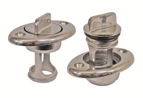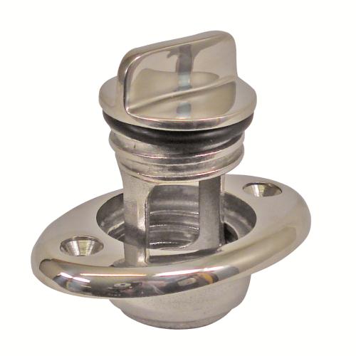 Ruostumattomasta teräksestä valmistettu veneen tyhjennystulppa.