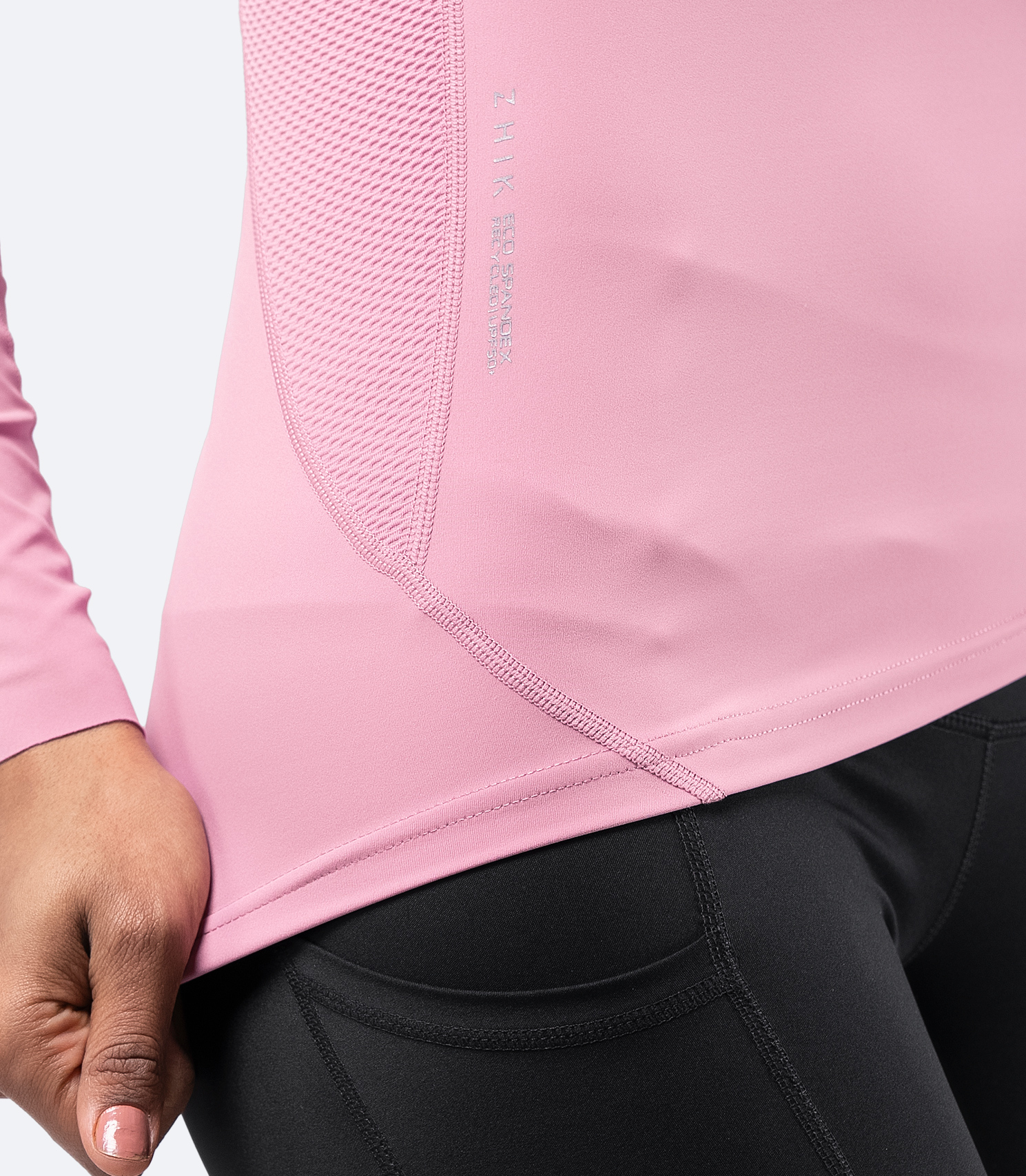 Aurinkoisiin olosuhteisiin suunniteltu pitkähihaisen lycran hengittävä rakenne sisältää perforoidut sivupaneelit, jotka lisäävät ilmanvaihtoa ja pitävät olon viileänä. Pehmeäpintainen materiaali tuntuu miellyttävältä ihoa vasten, ja UPF 50+ -aurinkosuoja toimii erinomaisesti myös märkänä, suojaten tehokkaasti pitkäkestoisessa altistuksessa.